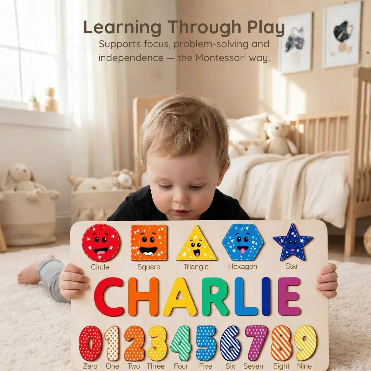 63 reviews for Colorful Shape – Wooden Montessori Name Puzzle