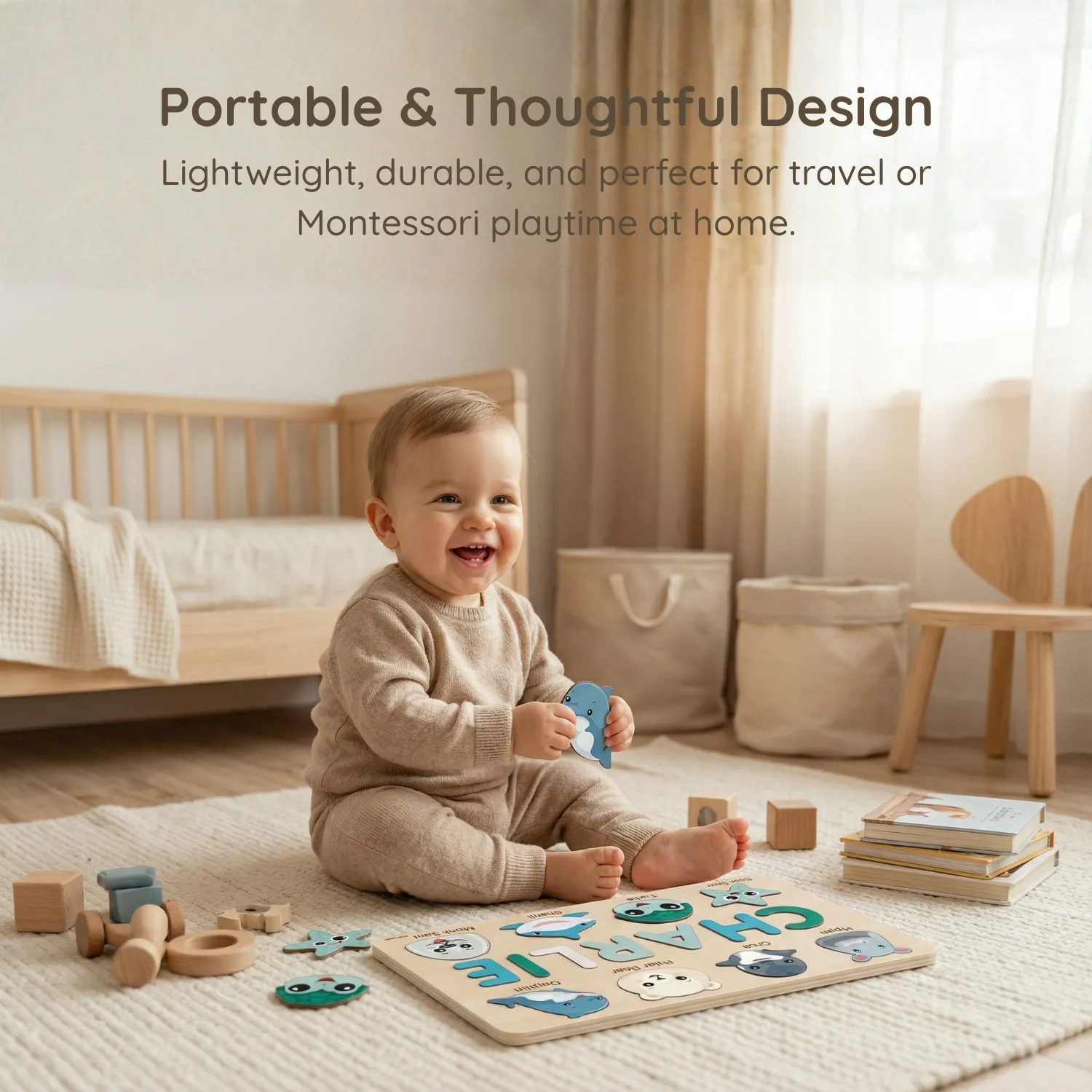 This board is more than a toy; it’s a treasured keepsake that goes beyond the standard fish. It introduces your child to the “Big Blue” mammals like the powerful Orca, the fuzzy Polar Bear, and even the river-dwelling Hippo. With friendly, smiling faces and calming colors, it turns learning about aquatic life into a joyful daily activity.